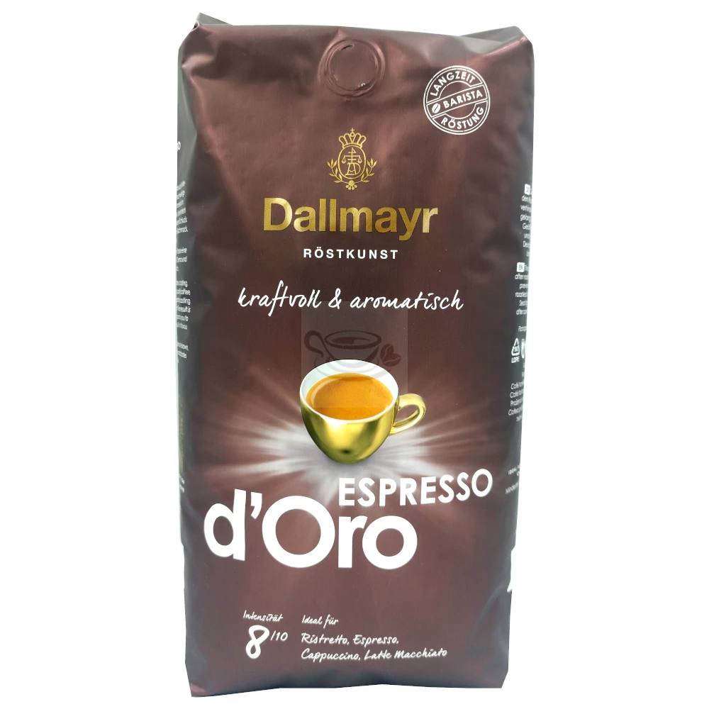 Dallmayr d’Oro Espresso is a typical Italian espresso with a golden brown crema layer. Full, lasting taste with a wonderful aroma. Also great for making cappuccino and latte macchiato.