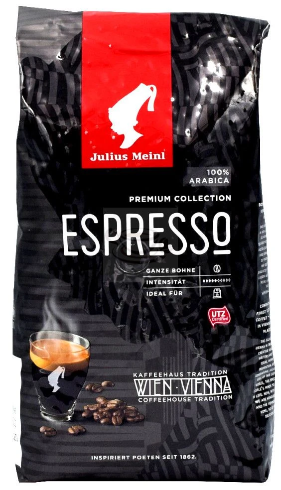 Sustainable espresso with a Viennese touch from the famous Julius Meinl coffee house. Carefully selected Arabica beans from the leading coffee plantations of South and Central America give this espresso its aromatic taste, sensual scent and the very fine crema. This espresso is UTZ certified and is particularly suitable for the preparation of espresso.